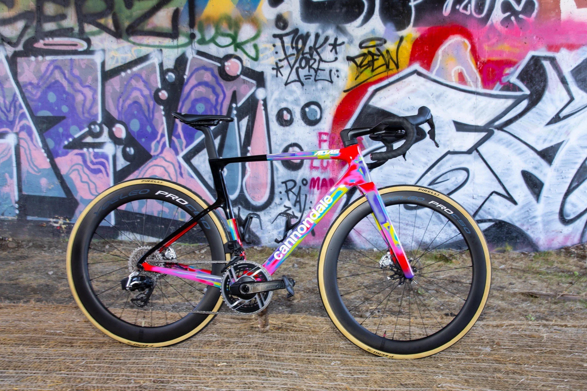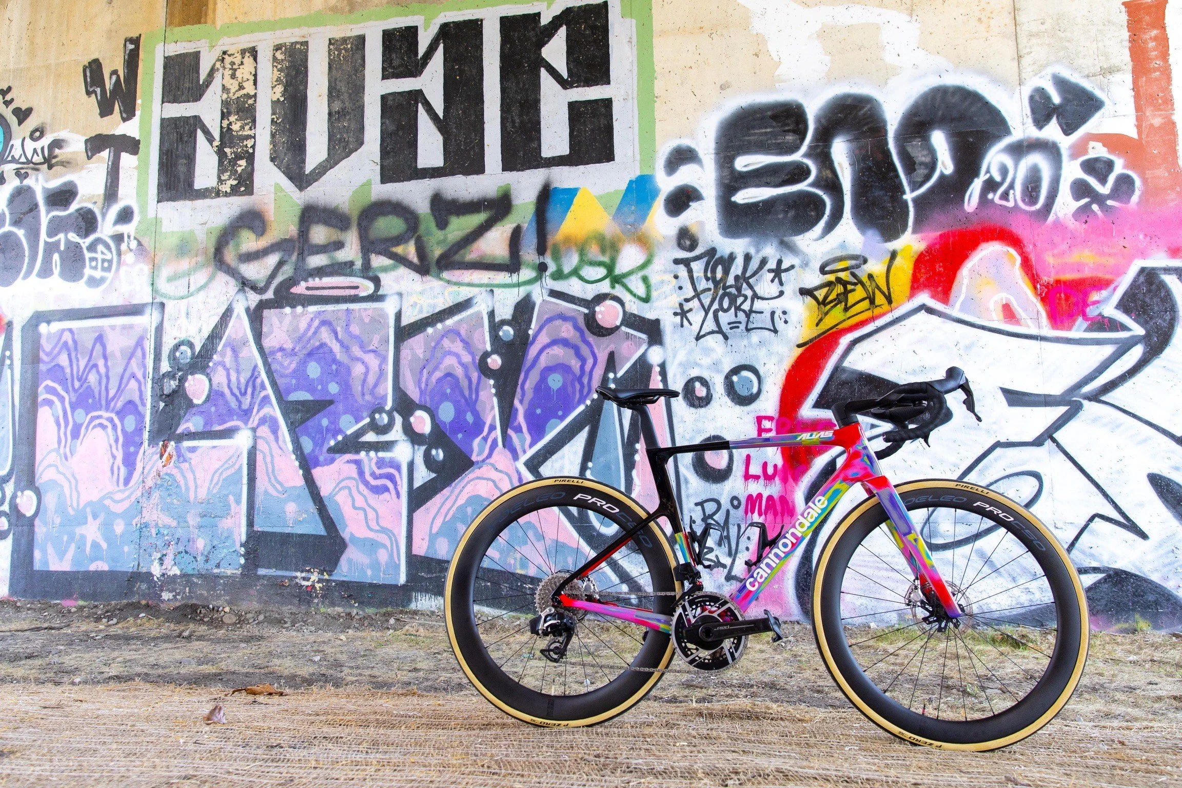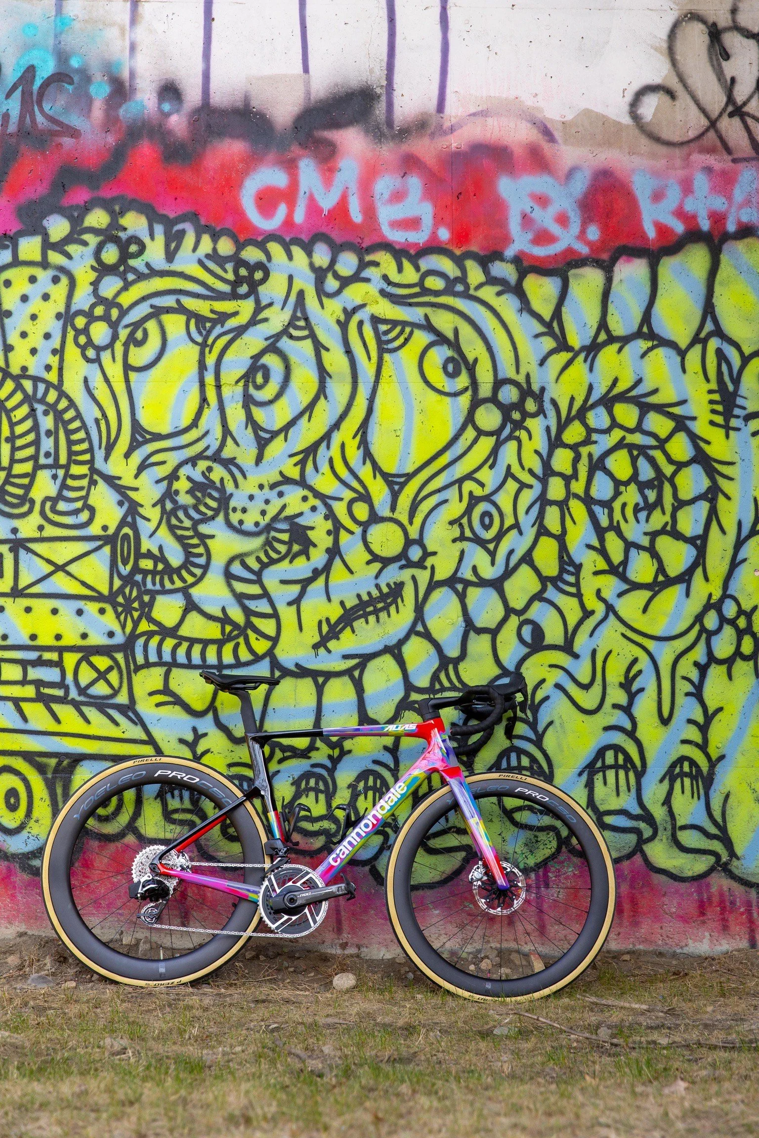 Inspired by the EF Education team frames, Eric wanted to have something similar made for his frame but with his preferred colors. He owns an apparel company called Alias which sponsors his team so we placed his logo prominently on the top tube and finished everything off in a super wet clear.